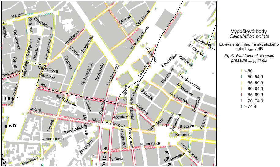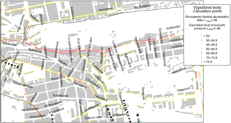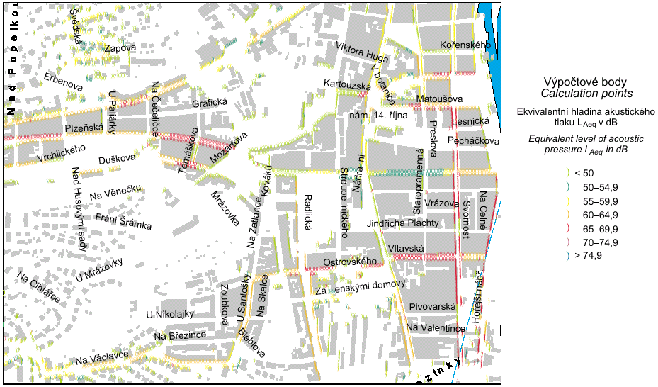 - Calculated road and tramway traffic noise map, 2001 (Atlas of the Prague's Environment)