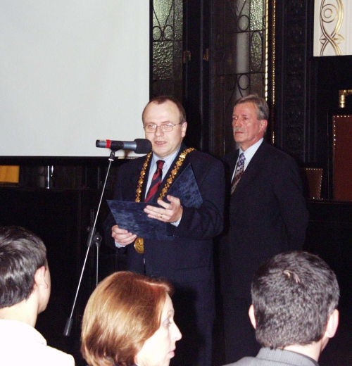 FOTO - Pražský primátor Igor Němec na předávání cen Czech Press Photo 2002: "Docela mě hřeje vědomí, že pražská radnice je od počátku při tom.."
